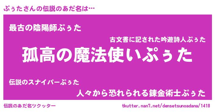 | 意味不明あだ名 | 『とにかく怪しいぷぅた』『自称ぷぅた』 |