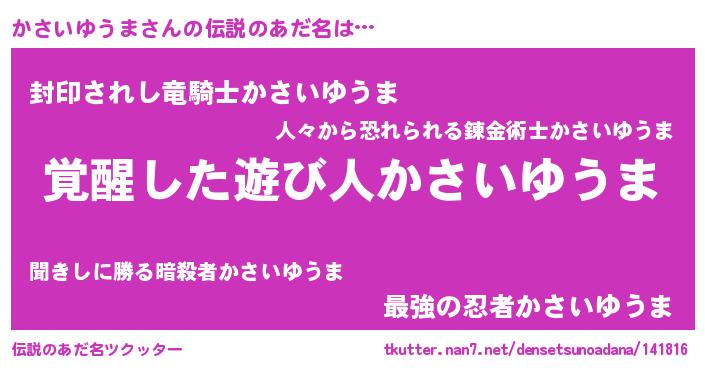 | 意味不明あだ名 | 『とにかく怪しいかさいゆうま』 |