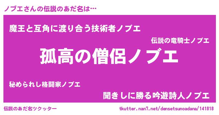 | ヒーロー風カッコイイあだ名 | 『仮面ノブダー』『魔戒騎士ノブ』 |