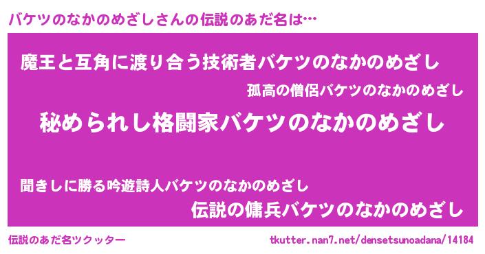 | ファンタジー風あだ名 | 『エターナルバケツノナカノメザシー』 |
