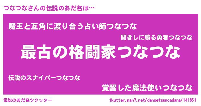 | 男性向けラノベタイトル風あだ名 | 『やはりつなつなの青春ラブコメはまちがっている 』 |