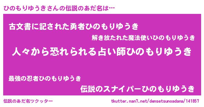 | ヒーロー風カッコイイあだ名 | 『正義の使者ひのもりゆうき』 |