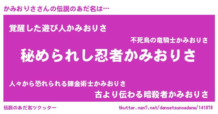 | 意味不明あだ名 | 『かみおりさフォーエバー』 |