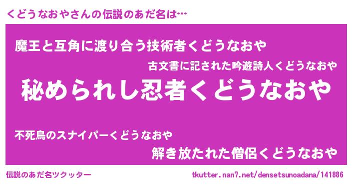 | ファンタジー風あだ名 | 『エターナルクドウナオヤー』 |