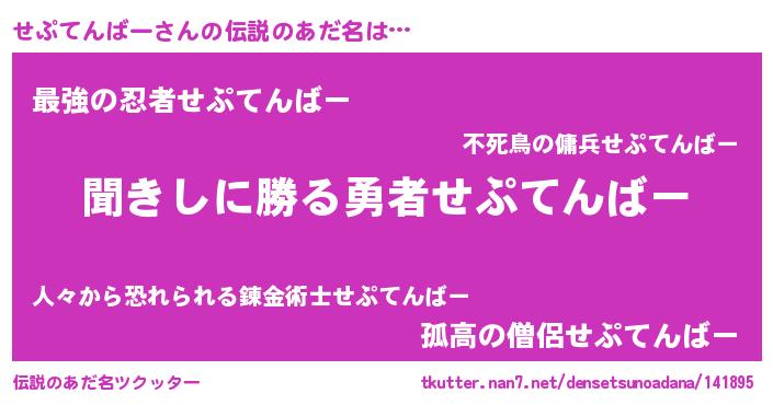 | 意味不明あだ名 | 『住所不定無職せぷてんばー(86歳)』 |