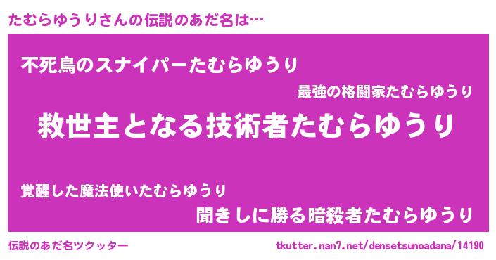 | 意味不明あだ名 | 『自称たむらゆうり』 |