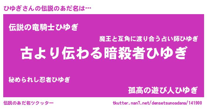 | 男性向けラノベタイトル風あだ名 | 『転生したらひゆぎだった件』 |