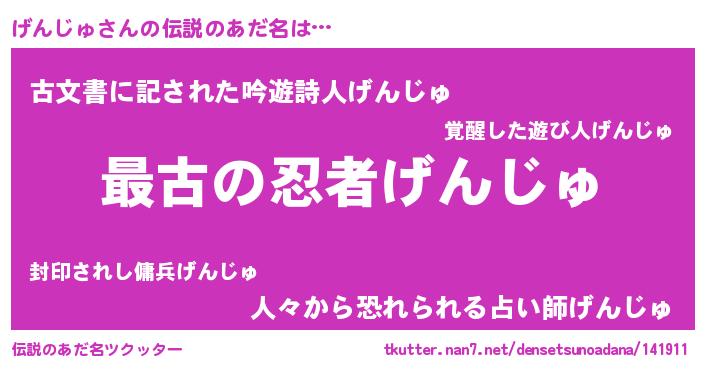 | ヒーロー風カッコイイあだ名 | 『仮面ゲンダー』『ウルトラげんじゅマン』 |