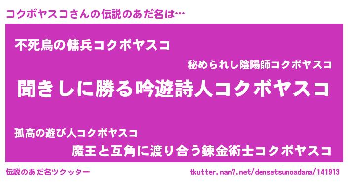 | 男性向けラノベタイトル風あだ名 | 『コクボヤスコという概念が存在しない退屈な世界 』 |