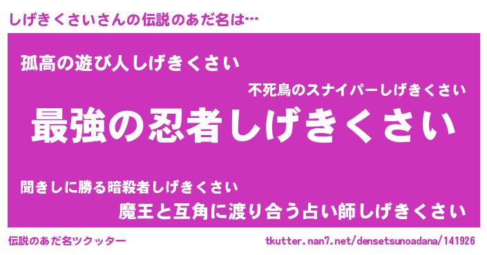 | 胡散臭い通販商品みたいなあだ名 | 『あなたにだけ特別に提供する限定10本のレアな日本酒…その名も「しげきくさい」』 |