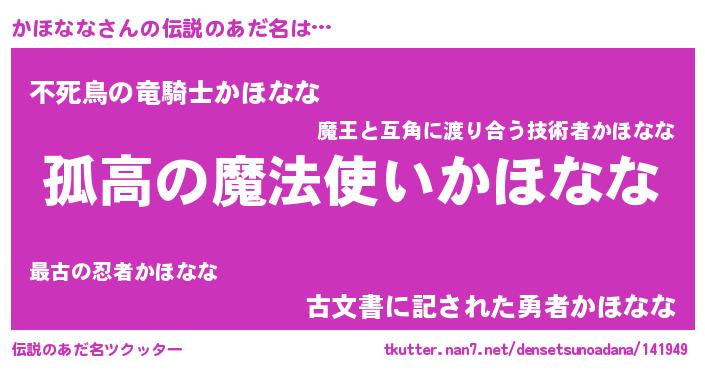 | 女子向けラノベタイトル風あだ名 | 『かほななは平凡を望む』『闇のかほなな』 |