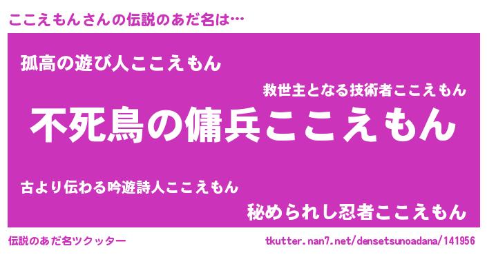 | 女子向けラノベタイトル風あだ名 | 『ここえもん姫と円卓の騎士』 |