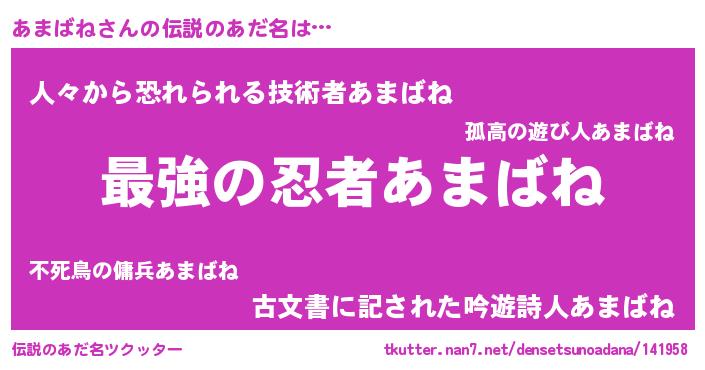 | 意味不明あだ名 | 『住所不定無職あまばね(40歳)』 |