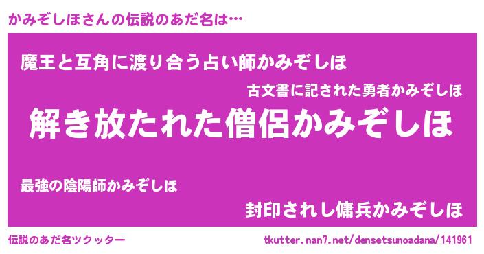 | 意味不明あだ名 | 『住所不定無職かみぞしほ(65歳)』 |