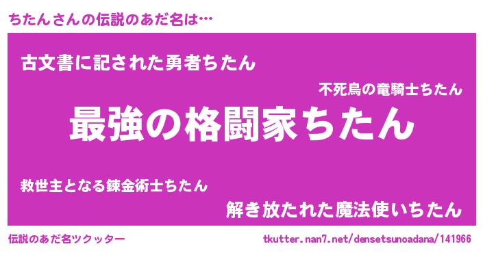 | 男性向けラノベタイトル風あだ名 | 『ちたんに滅ぼされるだけの簡単なお仕事です』 |