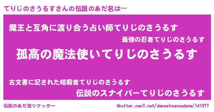 | 欧米人風あだ名 | 『アンジェラ・てりじのさうるす』 |