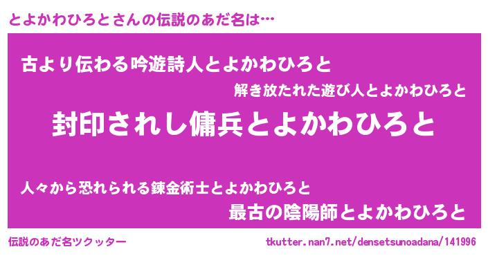 | 意味不明あだ名 | 『住所不定無職とよかわひろと(59歳)』 |