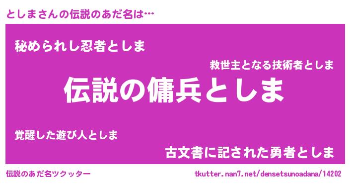 | 意味不明あだ名 | 『自称としま』『エリンギ科としま属』 |