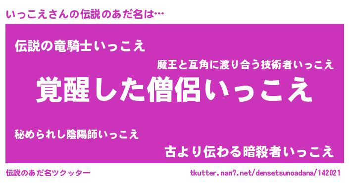 | 男性向けラノベタイトル風あだ名 | 『いっこえの嫁は女の子じゃないと思った?』 |