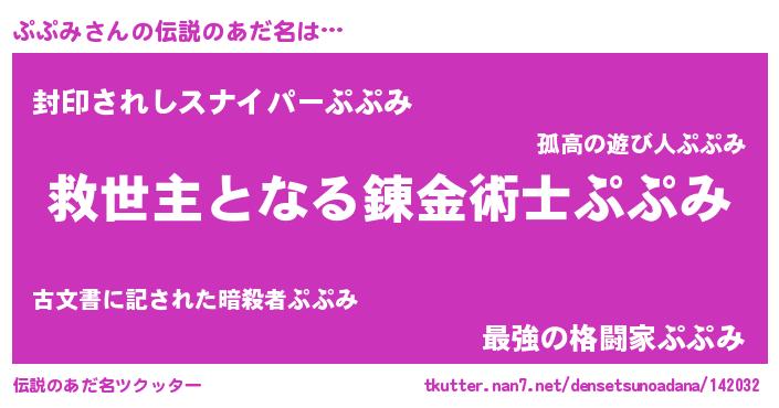 | ヒーロー風カッコイイあだ名 | 『天空の使者ぷぷみ』『スーパーププミ』 |