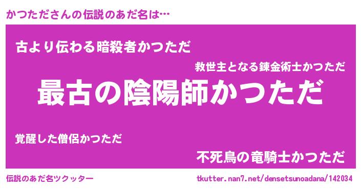 | ファンタジー風あだ名 | 『エターナルカツタダー』『ゼカツトゥ』 |