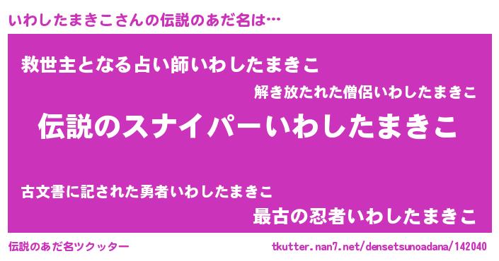| ヒーロー風カッコイイあだ名 | 『スーパーイワシタマキコ』 |
