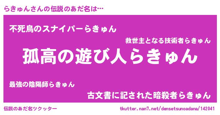 | 男性向けラノベタイトル風あだ名 | 『ラキュンスレイヤー』 |