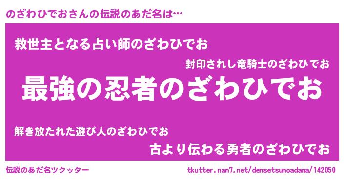 | 胡散臭い通販商品みたいなあだ名 | 『あなたにだけ特別に提供する限定10本のレアな日本酒…その名も「のざわひでお」』 |
