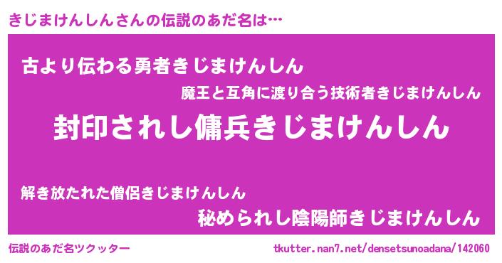 | 意味不明あだ名 | 『住所不定無職きじまけんしん(53歳)』 |