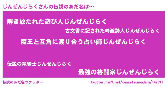 | 女子向けラノベタイトル風あだ名 | 『じんぜんじらく恋絵巻』 |