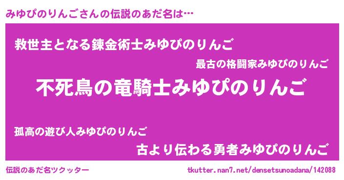 | 男性向けラノベタイトル風あだ名 | 『転生したらみゆぴのりんごだった件』 |