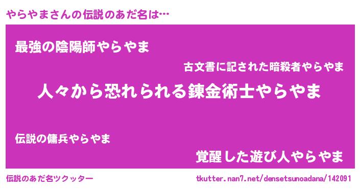 | ヒーロー風カッコイイあだ名 | 『正義の使者やらやま』『幻影騎士ヤラ』 |
