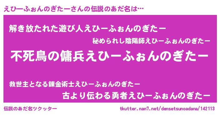 | 男性向けラノベタイトル風あだ名 | 『えひーふぉんのぎたーの憂鬱』 |