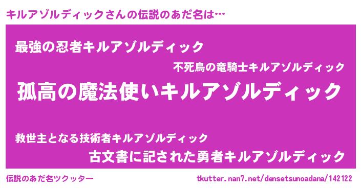 | ヒーロー風カッコイイあだ名 | 『黄金騎士キル』『仮面キルダー』 |