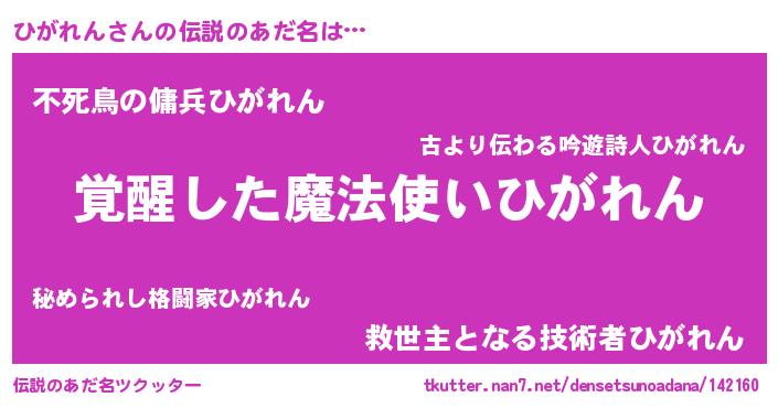 | ヒーロー風カッコイイあだ名 | 『炎刃騎士ヒガ』『スーパーヒガレン』 |