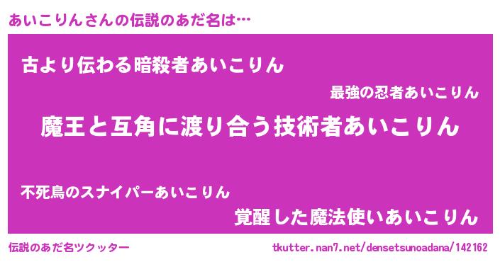| 女子向けラノベタイトル風あだ名 | 『あいこりん恋絵巻』 |