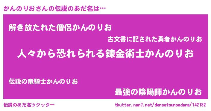 | 男性向けラノベタイトル風あだ名 | 『カンノリオスレイヤー』 |