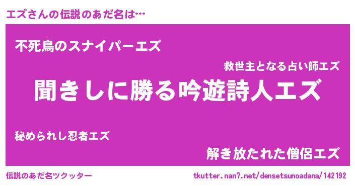 | 男性向けラノベタイトル風あだ名 | 『エズという概念が存在しない退屈な世界 』 |
