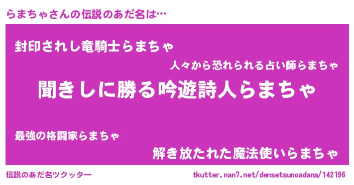 | ヒーロー風カッコイイあだ名 | 『ネオラマチャ』『スーパーラマチャ』 |