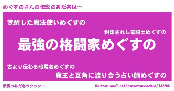 | ヒーロー風カッコイイあだ名 | 『仮面メグダー』『ウルトラめぐすのマン』 |