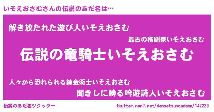 | 男性向けラノベタイトル風あだ名 | 『いそえおさむの憂鬱』 |