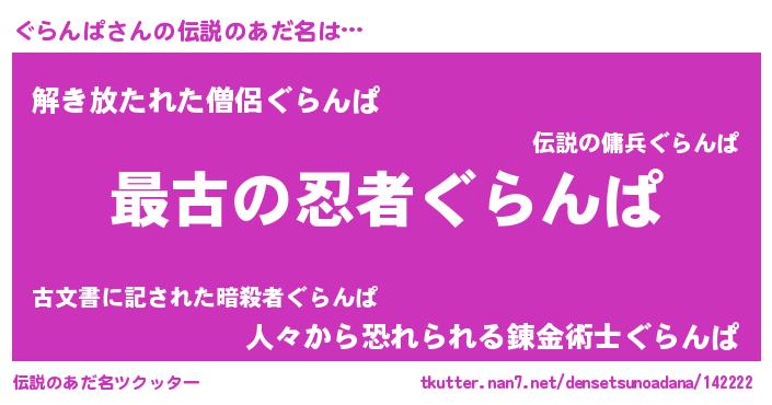 | 意味不明あだ名 | 『住所不定無職ぐらんぱ(41歳)』 |