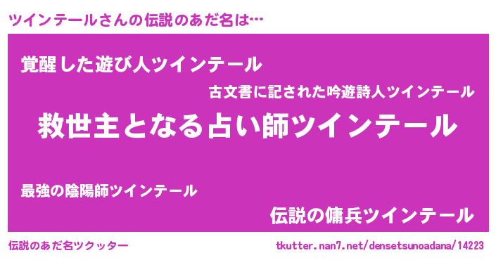 | ヒーロー風カッコイイあだ名 | 『最強戦士ツインテール』『仮面ツイダー』 |