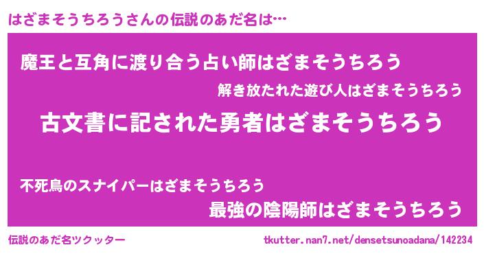 | ヘコむあだ名 | 『はざまそうちろう(遠い目)』『豆乳』 |