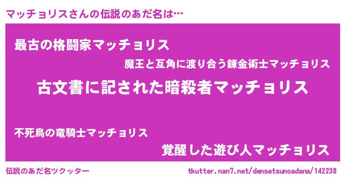 | 意味不明あだ名 | 『住所不定無職マッチョリス(56歳)』 |