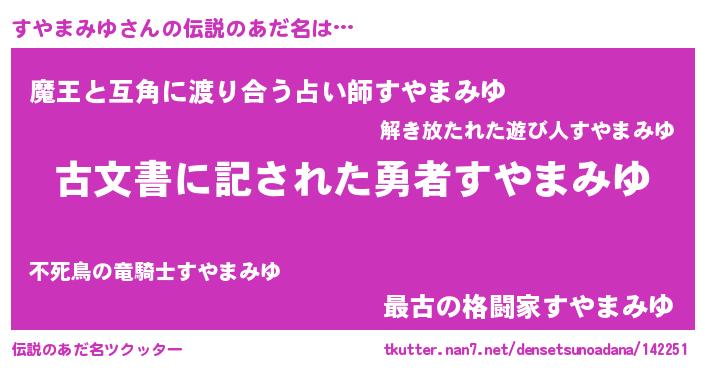 | ヒーロー風カッコイイあだ名 | 『ネオスヤマミユ』『仮面スヤダー』 |