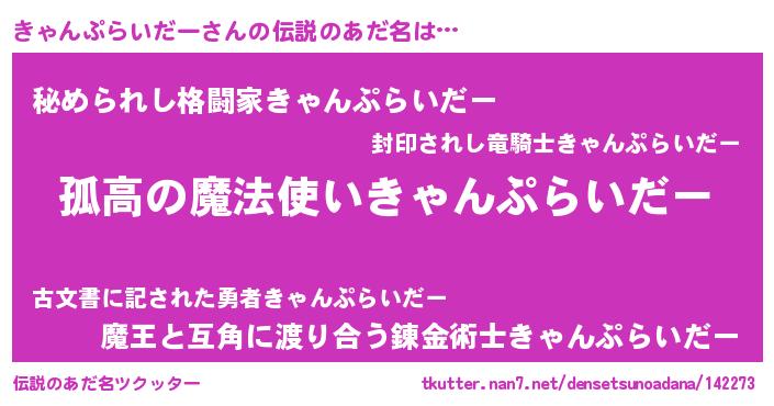 | 胡散臭い通販商品みたいなあだ名 | 『信頼と実績のサプリメント…その名も「きゃんぷらいだー」』 |