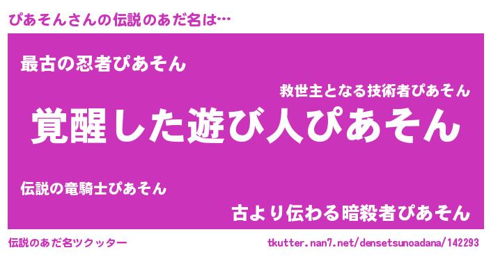 | 意味不明あだ名 | 『とにかく怪しいぴあそん』 |