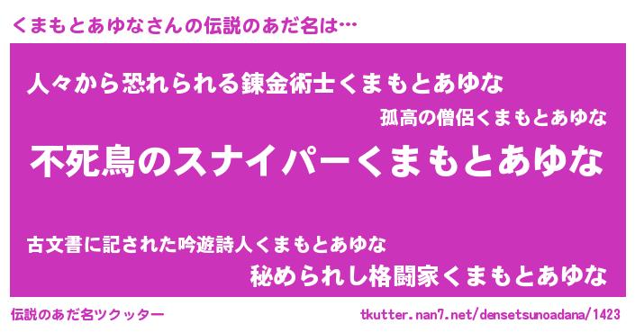 | 男性向けラノベタイトル風あだ名 | 『くまもとあゆなの憂鬱』 |
