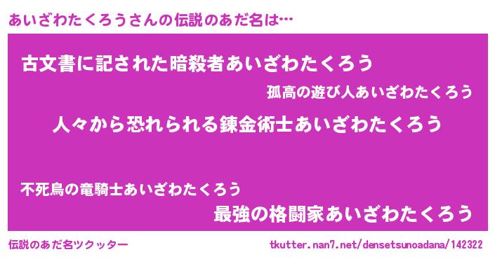| ヒーロー風カッコイイあだ名 | 『友情の使者あいざわたくろう』 |